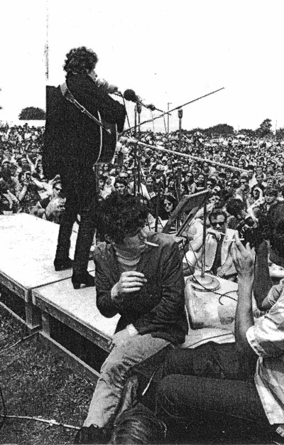 · Donovan sat on stage while Bob Dylans performed.