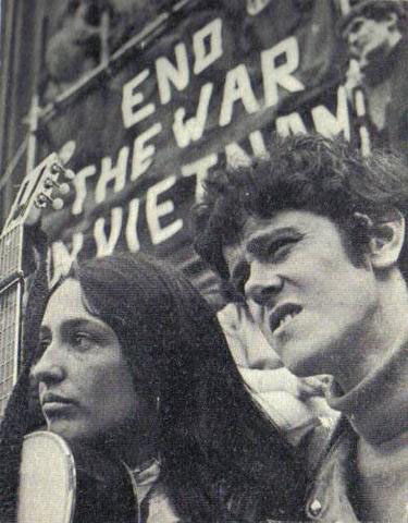 · Joan Baez and Donovan sat at Nelson's Column in Trafalgar Square.