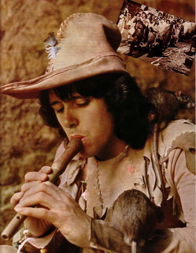 · Donovan (The Piper) plays the flute to lead the rats out of the village.