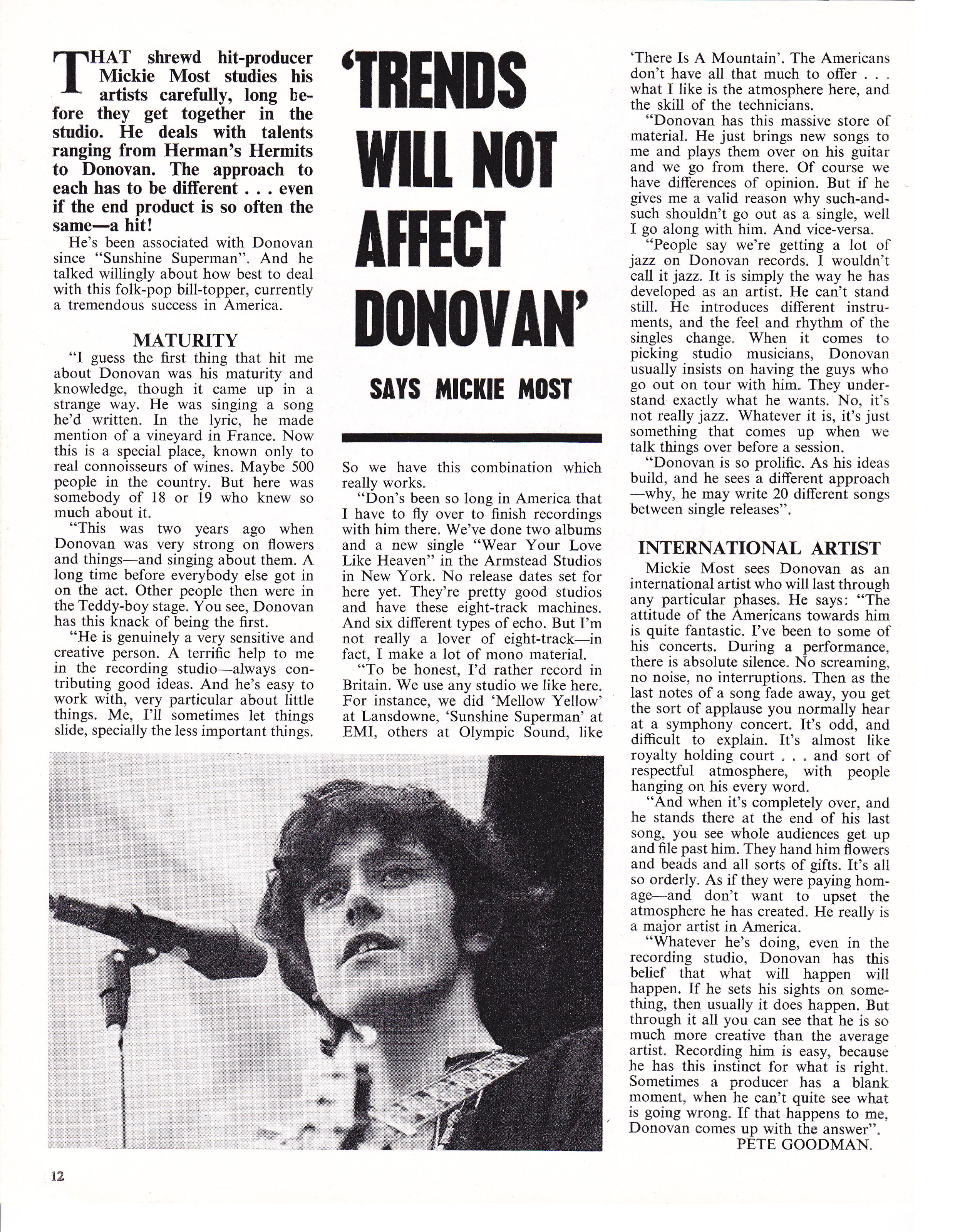 Trends will not affect Donovan, says Mickie Most