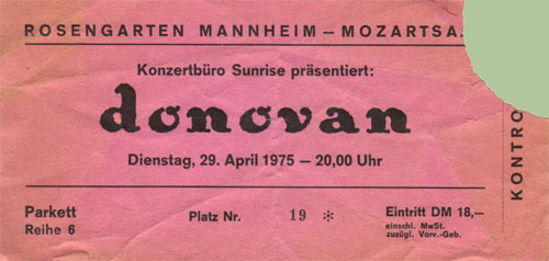 · Ticket for the Rosengarten Mannheim concert hall, 1975.