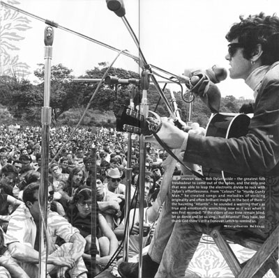· Donovan singing in front of the massive crowd that attended the festival.