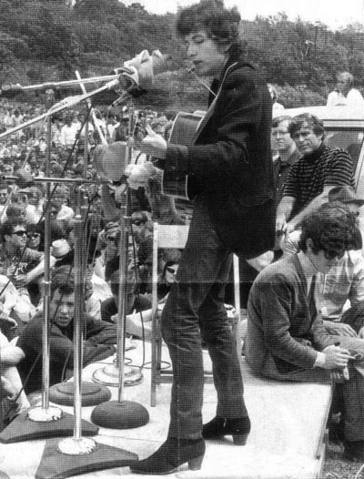 · Donovan sat on stage while Bob Dylans performed.