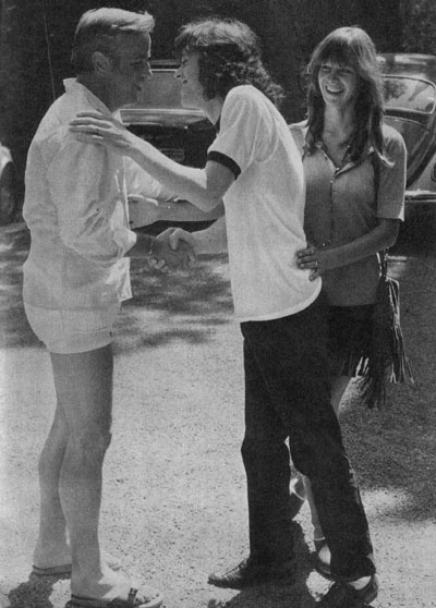 · Franco Zeffirelli shaking hands with Donovan, Linda at the right.