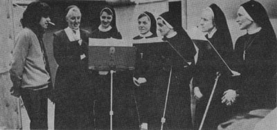 · Donovan rehearsing with a group of nuns that sang some of the songs in the film.
