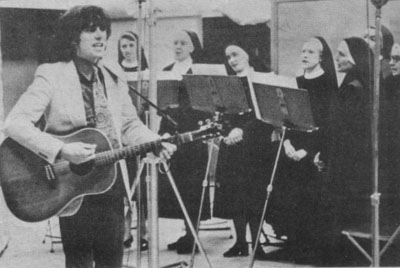 · Donovan rehearsing with a group of nuns that sang some of the songs in the film.