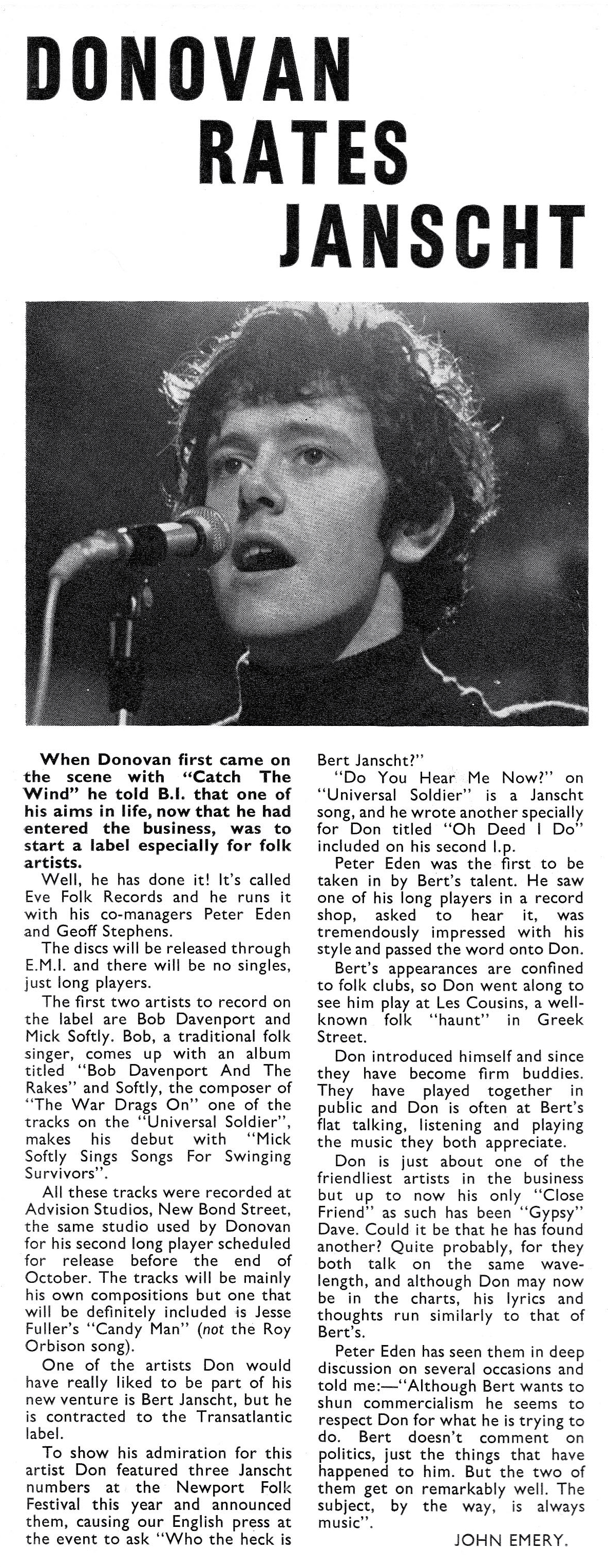 · Press clipping from British magazine Beat Instrumental. They mistakenly refer to Jasnch as "Janscht".