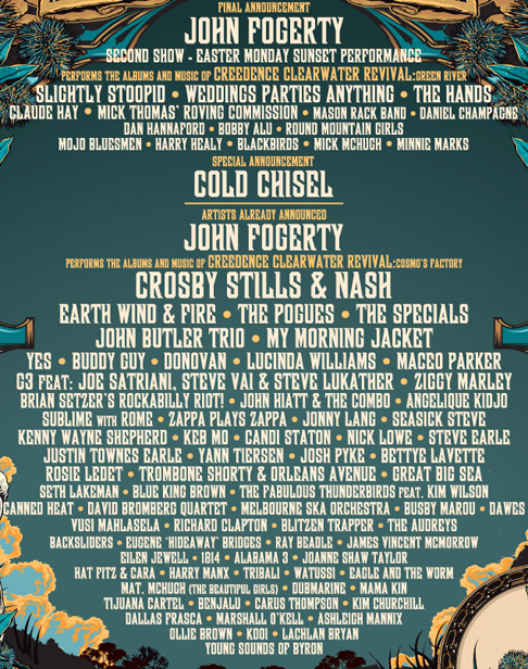Donovan will play at the 23rd Annual Byron Bay Bluesfest, Australia, on Saturday 7, April 2012. The festival, held at Tyagarah Tea Tree Farm, will have 5 stages and many musicians and bands like John Fogerty, Crosby Stills & Nash, The Pogues, The Specials, My Morning Jacket and Yes.