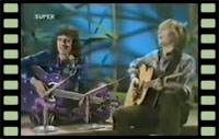 · John Denver is joined during the show, as it was usual, by his friends Bill and Taffy Danoff. On the last song that the three sing together, Farewell Andromeda, Donovan joins to dance in the background. |